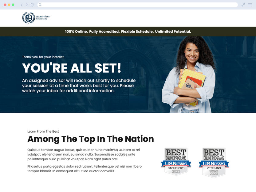 This Unbounce template is perfect for promoting a specific degree program at a University, College, Technical College or online learning institution.